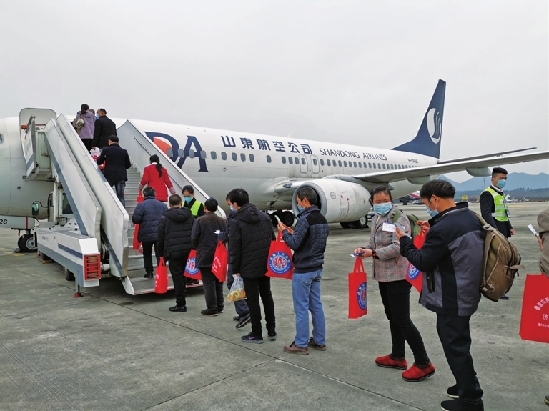 3月5日,武隆区47名贫困务工人员搭乘免费航班赴山东省济南市就业,拉开了2020年鲁渝东西部劳务扶贫协作的序幕。