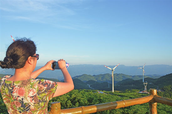 近年来,我区牢固树立“绿水青山就是金山银山”生态发展理念。始终坚持走“绿色发展、生态优先”可持续发展道路。按照因地制宜、山水结合、文旅融合、农旅融合、商旅融合……产业集群互动思路,不断壮大培育“绿色生态经济体”,同时将乡村旅游作为全区旅游“第三大战场”进行打造,有力撬动26个乡镇“乡村避暑纳凉经济”产业火热升温。图为游客在和顺镇寺院坪拍照留影,记录美好时刻。