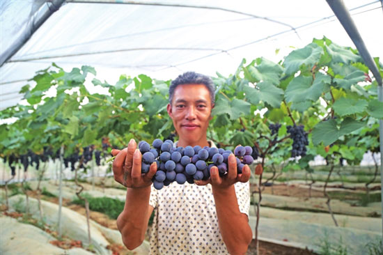陈春林说,种葡萄的头两年,夫妻二人吃了很多苦,葡萄生长的每个阶段都需认真学习技术活,“只有技术学扎实了,才能见效益。”