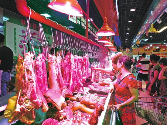 今夏,为确保游客的农产品和重要商品供给,区仙管委及时与区商务局、区工商局等部门积极沟通组织商品,鼓励区内外商家、超市到度假区开分店,以满足游客的购物需求。目前,度假区农产品和重要商品供给得到有效保障。图为游客在新开张的超市里选购猪肉。 (朱迎军/摄)