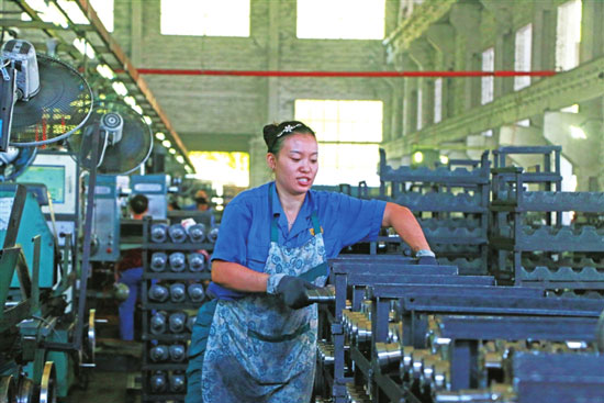 近日,在武隆工业园区白马组团重庆瑁得机械制造有限公司,工人正在车间紧张作业,该公司主要生产销售轿车配件曲轴,为当地提供了170余个就业岗位。