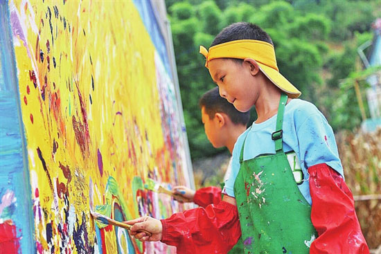 秋高气爽,五谷满仓。一群重庆来的小客人,将秋季的颜色画在了墙上,用艳丽的油彩绘画丰收的喜悦。