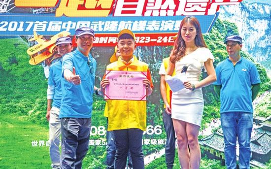 经过重重角逐,穿越天生三桥航模竞技赛冠军诞生了,来自重庆年仅13岁的选手贺权鑫凭借娴熟技艺打败众多选手摘得桂冠,他也是这次进入决赛年龄最小的选手。