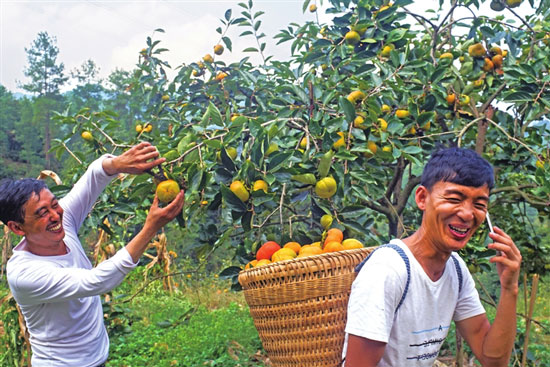 眼下正值甜柿成熟季节,走进文复乡,未见其果先闻其香,走进一看,果树簇拥着连成一片,绿油油的柿子树上挂着累累硕果,让人不禁想摘下一个尝尝。