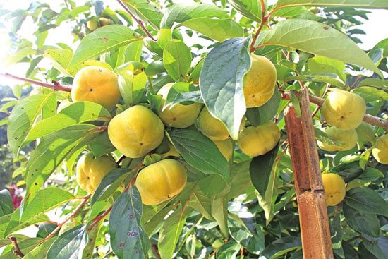 今年,因为光照和雨水充足,文复的甜柿获得了大丰收。