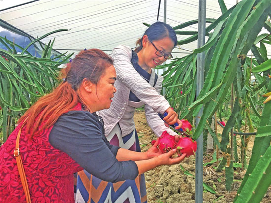 市民采摘火龙果。
