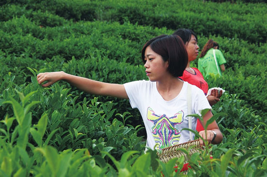烈日当头的夏季,白马镇豹岩村的万亩茶树一片葱茏,茶事体验、茶文化展示等系列休闲农业项目引来无数游人在此流连。