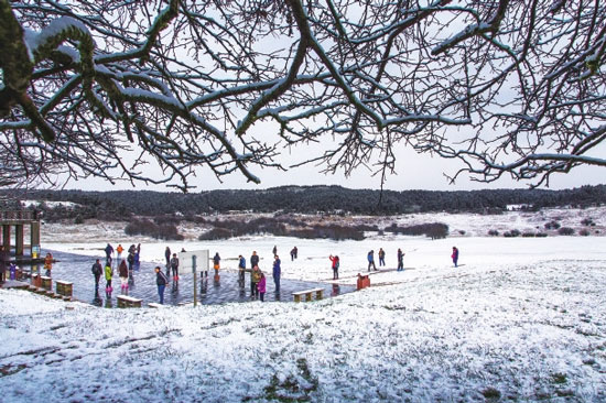 受连日来的冷空气影响,仙女山景区的冰凌、玉树琼枝、雾凇景观吸引了不少游客前往游玩观赏。在景区公路上信步,在雪地里嬉戏,都如置身于景色怡人的图画中。