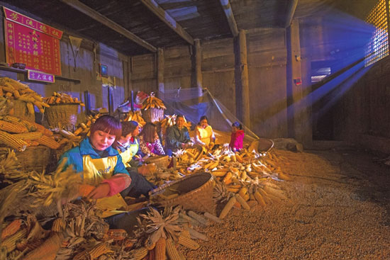 临近春节,许多在外务工的村民纷纷回到了家中。近日,记者在土地乡沿河村看见村民们围在一起,趁着劳动力充足,正忙着将秋季收获的玉米晾晒、脱粒,为开春后的生产生活做好准备。