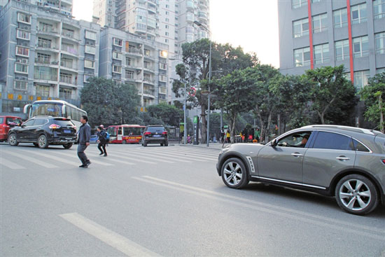 自从交管部门出台了机动车在人行道前必须礼让行人的新规后,机动车驾驶员更文明了,遵章守规,在人行道前主动减速行驶或停车耐心礼让行人,让城市交通呈现出美丽文明的画卷,令斑马线也成为一道文明有礼的风景线。 (文建英/摄)