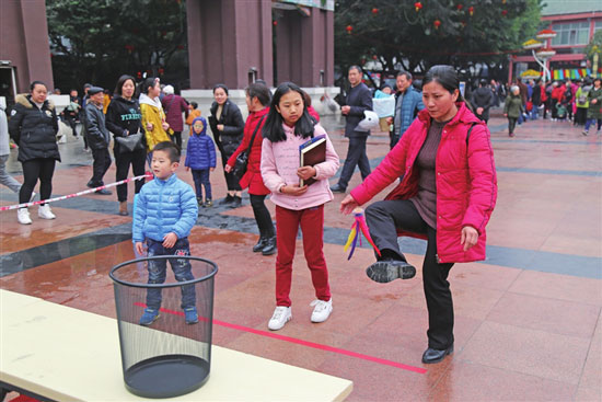 3月2日,2018我区闹元宵游园暨猜灯谜活动在区人民广场、世纪广场举行,现场设有猜字谜、祈福“钻钱眼”、欢乐夹汤圆、筷子落瓶、两人拔河、瞎子敲锣等16项趣味比赛项目,让市民游客在欢乐、祥和的氛围中度过元宵佳节。