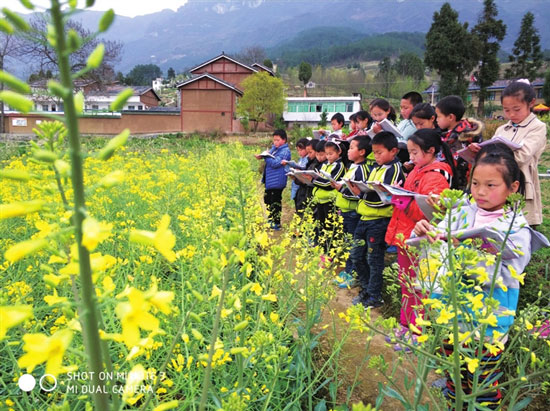 3月23日,羊角镇长坡小学教师带领孩子们来到校外,开展以“彩绘春天”为主题的活动。引导孩子们欣赏春天的美景,鼓励孩子发现美、亲近美,用手中的笔画出心中最美丽的春天,感悟大自然的神奇和美丽。 (余春萍/摄)