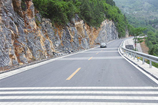 近日,在国道G353线(白马山旅游环线)白马镇铁佛村三王庙段,一辆小车正疾驰在宽阔的公路上。三王庙段公路全长697米,改造前宽不足4米,曾经是白马山旅游环线最狭窄的一段公路。改造后,公路宽度增加到8.5米,过往车辆通畅自如。近年来,我区大力实施交通先行战略,今年全面启动交通建设三年行动计划,紧紧围绕智慧交通、生态旅游交通、交通扶贫等重点,加快推进一批重点交通项目建设,全区内畅外联的综合立体交通网络正在逐步形成。