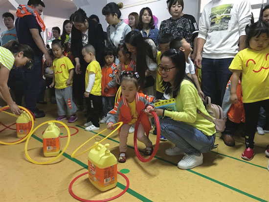 今年“六一”期间,全区各学校和幼儿园通过举办文艺演出、开展励志教育、参与校外体验、组织亲子交流、经典诵读等活动欢庆六一,让广大少年儿童度过一个健康快乐而有意义的节日。图为区示范幼儿园开展亲子活动。 (代君君/摄)