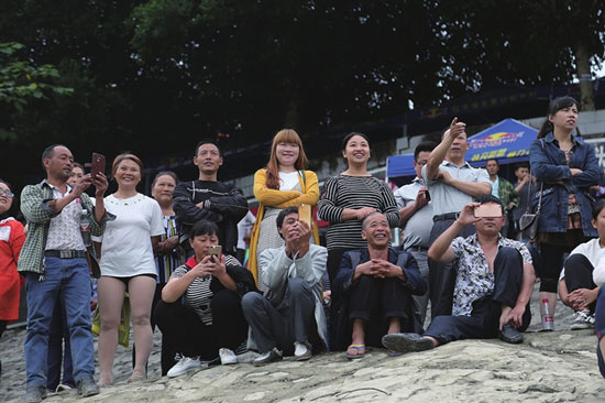 6月12日在江口镇三河口芙蓉江边,人声鼎沸,锣鼓喧天。现场观众的加油声此起彼伏,参赛选手的竞争热情空前高涨。来自全市的8支龙舟队在芙蓉江绝美的山光水色中飞桨逐浪。
