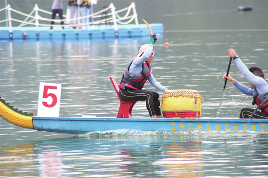 鼓手掌握着划龙舟节奏