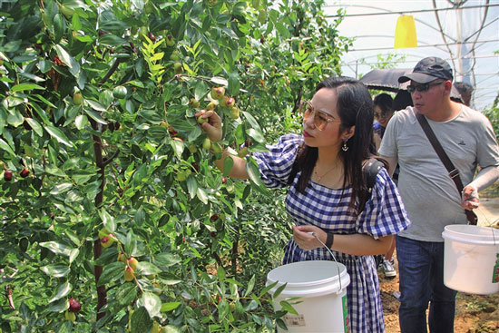 据了解,目前除尚枣家庭农场外,羊角猪腰枣已开始大面积成熟上市,喜欢的市民可以找个好天气,带着家人到羊角体验采摘的乐趣,品味枣子的香甜。