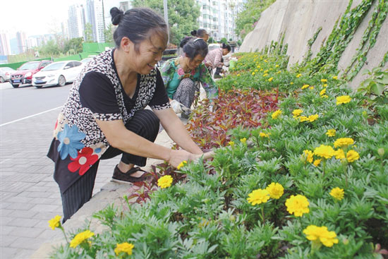 近日,记者从区城管局获悉,从本月15日起,该局对城区主要绿化地带的花苗进行了更换。目前,此项工作主体部分已经陆续完成,只有小部分花苗还在更换中。图为工人正在武仙路段栽种花苗。