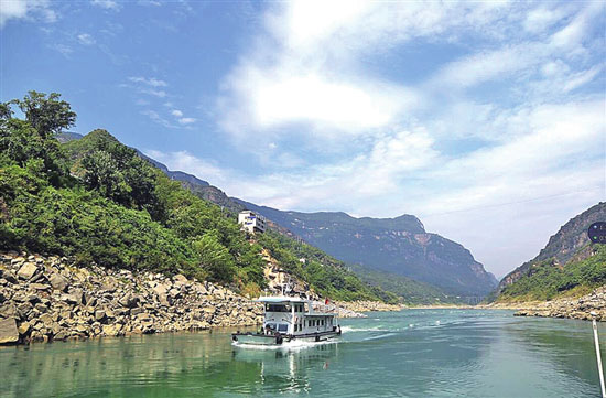 近年来,全区上下深学笃用习近平生态文明思想,坚持“共抓大保护、不搞大开发”,以河长制促进河长治,坚持定期不定期巡河,全面准确掌握河道情况,因河施策保护河道环境,努力守护一江碧水、两岸青山。图为一工作船只正在乌江武隆段巡河。