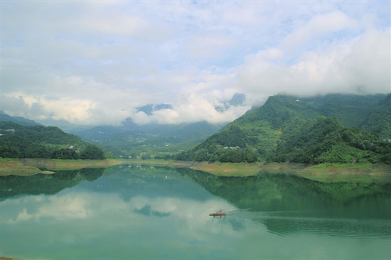行行复行行,山路弯弯,潺潺的山谷溪水,像是一幅流动的绿色山水画,在林间轻快地流淌着。天上的浮云,聚散两依依,清新的环湖绿道边,一丛丛苍翠的芦苇,临水而照。