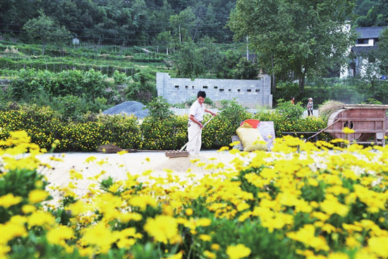 党的十九大提出,要大力推进乡村振兴战略,有效调动农民投身农业和发展农业的积极性。金秋时节,也是丰收时节,田间地头、农家院坝到处是丰收场景。图为羊角镇永隆村村民正在晾晒稻谷。