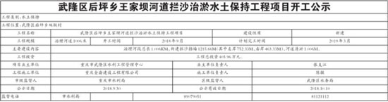 武隆区后坪乡王家坝河道拦沙治淤水土保持工程项目开工公示
