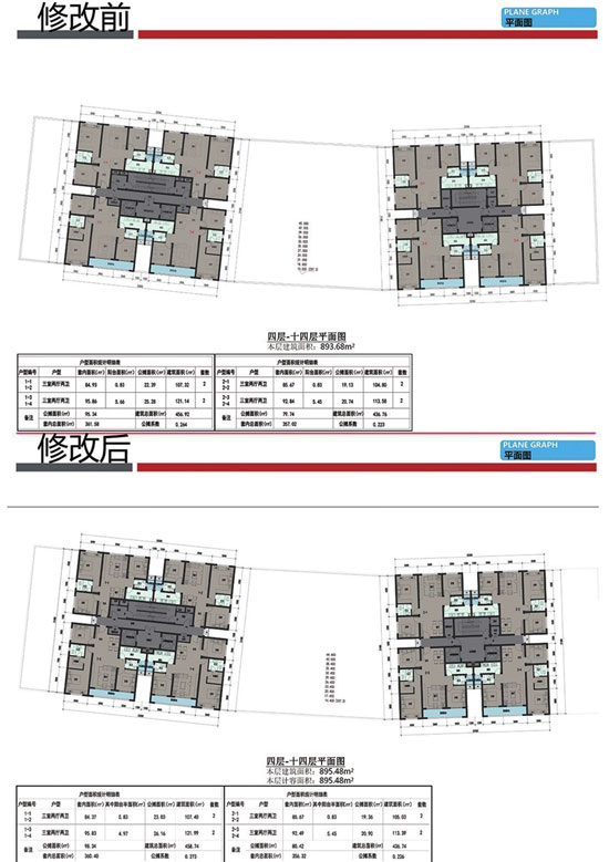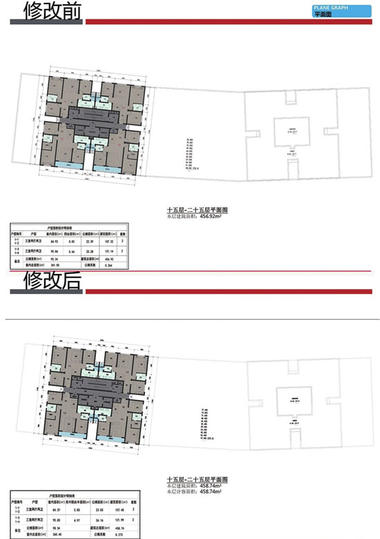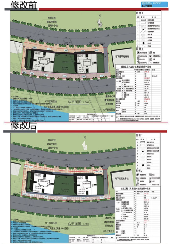 一、总建筑由29515.57㎡减少至27615.39㎡,容积率由8.62减少至8.17;见总图