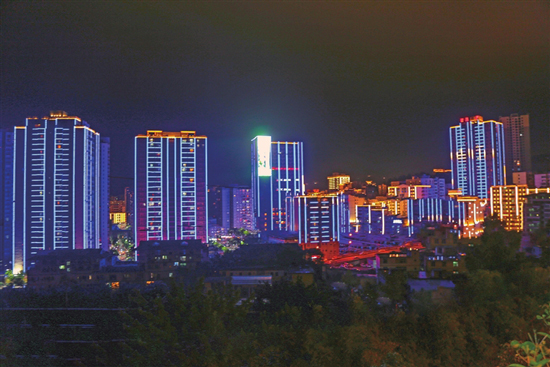 城市夜景照明用灯光塑造城市景观的夜间形象,为人们生活提供一个安全、舒适、美好的光环境。近年来,随着我区经济社会的发展和人民生活水平的提升,人们的生活习惯发生了很大的变化,对夜间生活环境的要求提高。我区启动实施亮化工程,打造一些品位高、质量好、与城市形象相适应的光环境场所,很好地烘托出城市的时代格调,从而增加城市吸引力,推进我区山青水秀美丽之地建设。图为世纪五龙城夜景灯饰。 (代君君/摄)