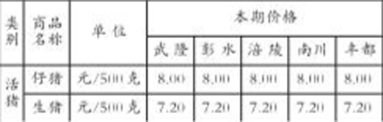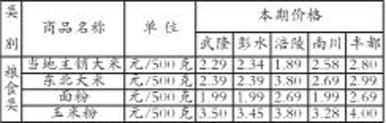 10月上旬武隆及周边区县主副食品价格动态表