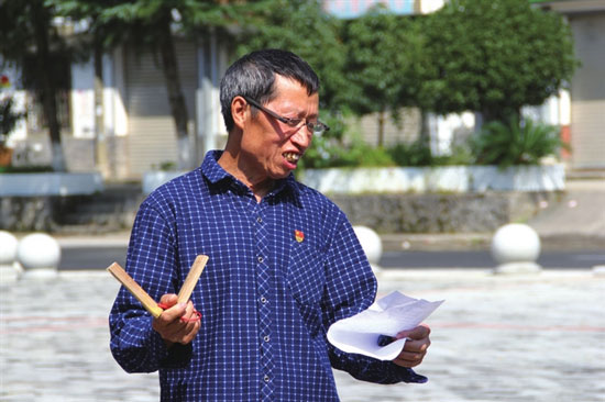 10月11日,土坎镇松树村迎来了难得的艳阳天。“啪!啪!啪!”一阵清脆的快板声突然响起,正在村活动中心健身广场锻炼的村民们不由停下脚步,将目光聚集在一位身着蓝衣的老大爷身上。