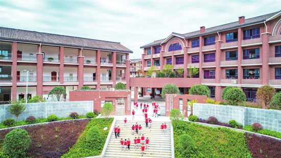 近年来,我区以缩小城乡差距、校际差别为重点,将学校布局调整纳入城乡一体化规划,合理设置学校,统筹考虑城镇发展与人口的流动,根据小学、初中生源结构情况,控减班级学额,以达到均衡发展的要求,办人民满意的教育。图为土坎镇中心小学,整洁优雅的校园环境,充足完善的设施设备,与城里学校几乎没有差别。 (王俊杰/摄)
