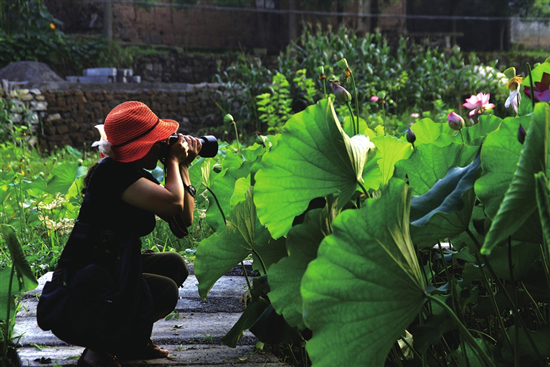 “接天莲叶无穷碧,映日荷花别样红。”炎热夏季,来到凤来乡高楼村荷花塘感受这壮观美景,满园的荷花竞相盛开,隔着老远就能闻到荷花的清香。尤其是在清晨,荷叶衬托着晶莹剔透的露珠,微风轻拂,荷叶便翩翩起舞,此时的花瓣也领略着风语温情,让人心旷神怡,心情舒畅。此情此景每年都会吸引周边大量的游客、市民和摄影爱好者前来观赏。游客李女士说:“听说这里的荷花是粉红色的,很漂亮,每年夏季我都要来这里观赏荷花的风姿。”