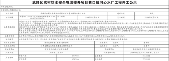 武隆区农村饮水安全巩固提升项目巷口镇河心水厂工程开工公示