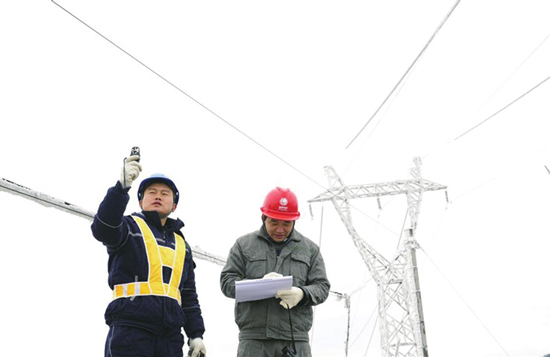 输电运维检修班员工对和顺镇110千伏四黎线等高寒区域输电线路开展特巡视,重点观察线路、杆塔覆冰情况。 (赵丽伟/摄)