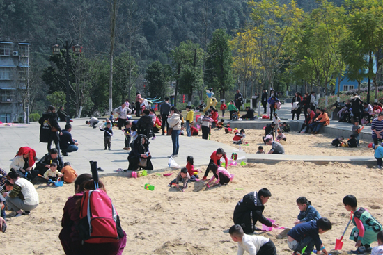 晴空万里,蓝天白云,春风嘻嘻,这样的天气正是出游的好时机。近日,记者在城区各公园看到,不少市民趁着周末的好天气,带着孩子们开启了“放风”模式。凤山公园的沙堆、龙山公园的小草坡等地方都成了孩子们的“游乐园”,砌城堡、打滚、滑草……玩得不亦乐乎。图为孩子们在凤山公园沙堆玩耍。