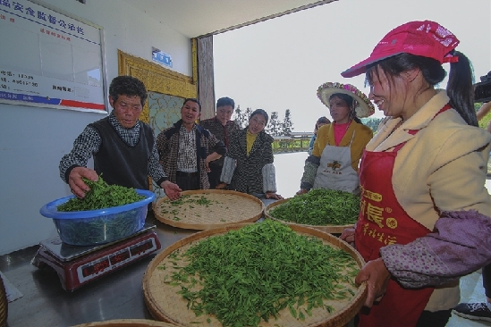 双凤山茶场的大面积茶林进入采摘期,为确保高品质的“高山茶”颗粒归仓,带动周边农户脱贫致富,当地茶场企业高薪聘请周边农户加入采茶工队伍,当地采茶工人日收入超过200多元。