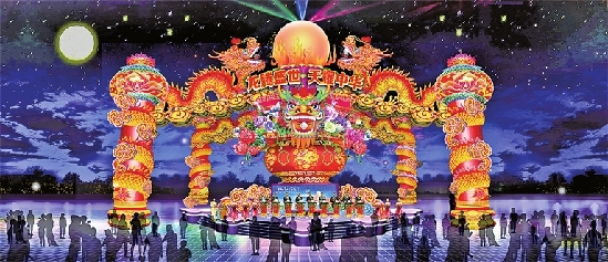 人民公园主展区45个灯组,以传统造型灯组为主,分为陆面灯组和水上灯组,以“原乡风情 大美铜梁”为设计理念,突出铜梁传统和地方特色。