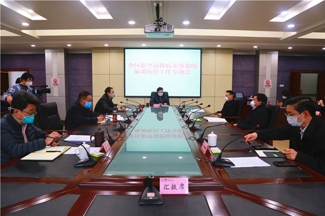 卢红强调,要加强舆情监测,及时准确规范发布疫情信息,注重宣传疫情防控知识和各项防控举措,引导广大市民增强自我保护意识、落实各项防控措施。要强化物资生产供应保障,统筹抓好防控必备物品、器材采购,严厉打击囤积居奇、哄抬物价、造假售假等行为。各单位部门要强化主体责任,做到守土有责、守土负责、守土尽责,确保各项工作全面落实到位。面对疫情,全区干部要担当起来,把工作能力充分体现出来,众志成城,坚决打赢这场战役。