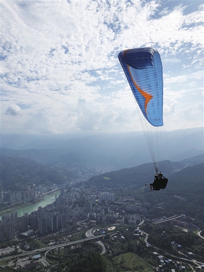 “我一下就蹦出一个想法,在这里搞滑翔伞基地。”李君杰回忆说,在西南地区尤其是喀斯特地貌的山区,找一个垂直的崖体并不难,但建滑翔伞基地,不光崖体的垂直高度要达到相应标准,而且崖体下方必须宽阔平坦,适合滑翔伞降落,崖体旁还要能修便道方便返场。而这些要求,黄泥泉这块崖体都能满足。很快,堰塘村的滑翔伞基地项目上马了,去年6月正式营业。