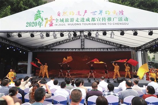 据了解,作为此次武隆全域旅游文旅推介活动文艺表演环节的重头戏,本次表演由“印象武隆”川江号子第九代传承人杨兴勇亲自担纲主唱,其通透有力的嗓音伴随着演员们忘情投入的演出,让成都市民及游客深刻领略到国家非物质文化川江号子的传奇魅力,也感受到来自大山深处、乌江之畔的武隆的独特之美。
