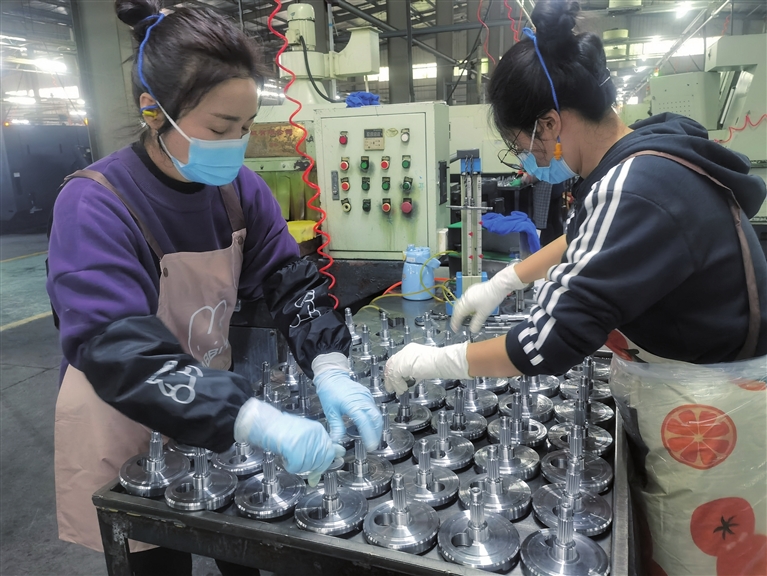 记者在位于白马工业园区的重庆罡阳机械制造有限公司看到,自动化生产线不停运转,规范佩戴口罩的员工有条不紊地投入生产。