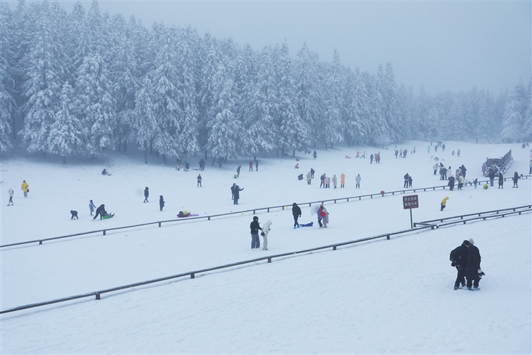 游客尽情享受着冰雪运动的欢乐。(杨 丹/摄)